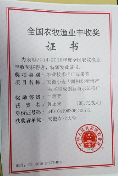 全国农牧渔业丰收成果二等奖——“安徽小麦大面积均衡增产技术集成创新与示范推广” 简介