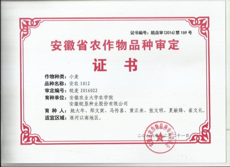 抗性表现:经安徽省主要农作物品种抗病性研究与鉴定中心(bet365苹果app植保学院)接种抗性鉴定,2015-2016年度中感白粉病(5级)、中抗赤霉病(严重度2.30)、感纹枯病(病指50)。