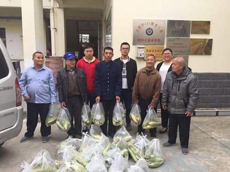 院学生第一党支部的几名学生在支部书记李婧老师带领下,将青年农场主实验班学生自己种植的新鲜玉米送给大杨镇敬老院的五保户老人和庐阳区的环卫工人们品尝。在大杨镇“乐年长者之家”敬老院,老人们收到学生们送来的新鲜玉米,眼含笑意,“感谢这些孩子能想到我们老年人,玉米很新鲜,我们要好好尝尝。”得知是大学生们创业亲手栽种的玉米,老人们更十分开心并且鼓励他们继续努力。在庐阳区永红路社区环卫工人服务站,送去的玉米也同样的得到了环卫工人们的欢迎和喜爱。
