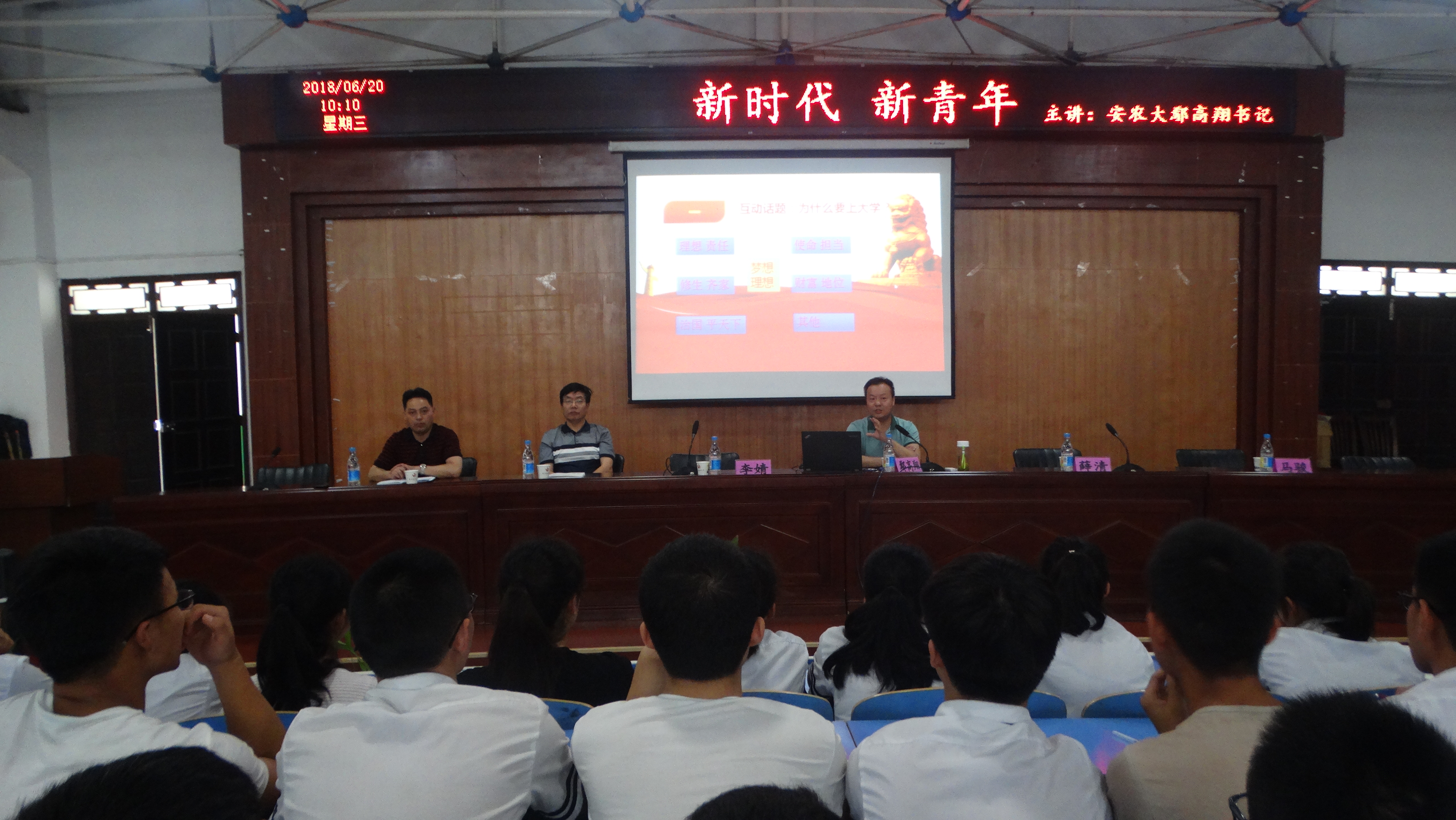 首先,鄢高翔书记为高二学生做了一场主题为《新时代 新青年》的报告,鄢书记从“为什么要上大学”、“这个时代给新青年哪些机遇”、“大学会给你带来什么”、“bet365苹果app是一个怎样的大学”四个方面为学生做了一场生动的报告,让学生笃定前行的目标,明确“奋斗者的青春最美丽,努力才能创造幸福”的道路,对bet365苹果app全方位的了解。报告得到师生的一致好评。