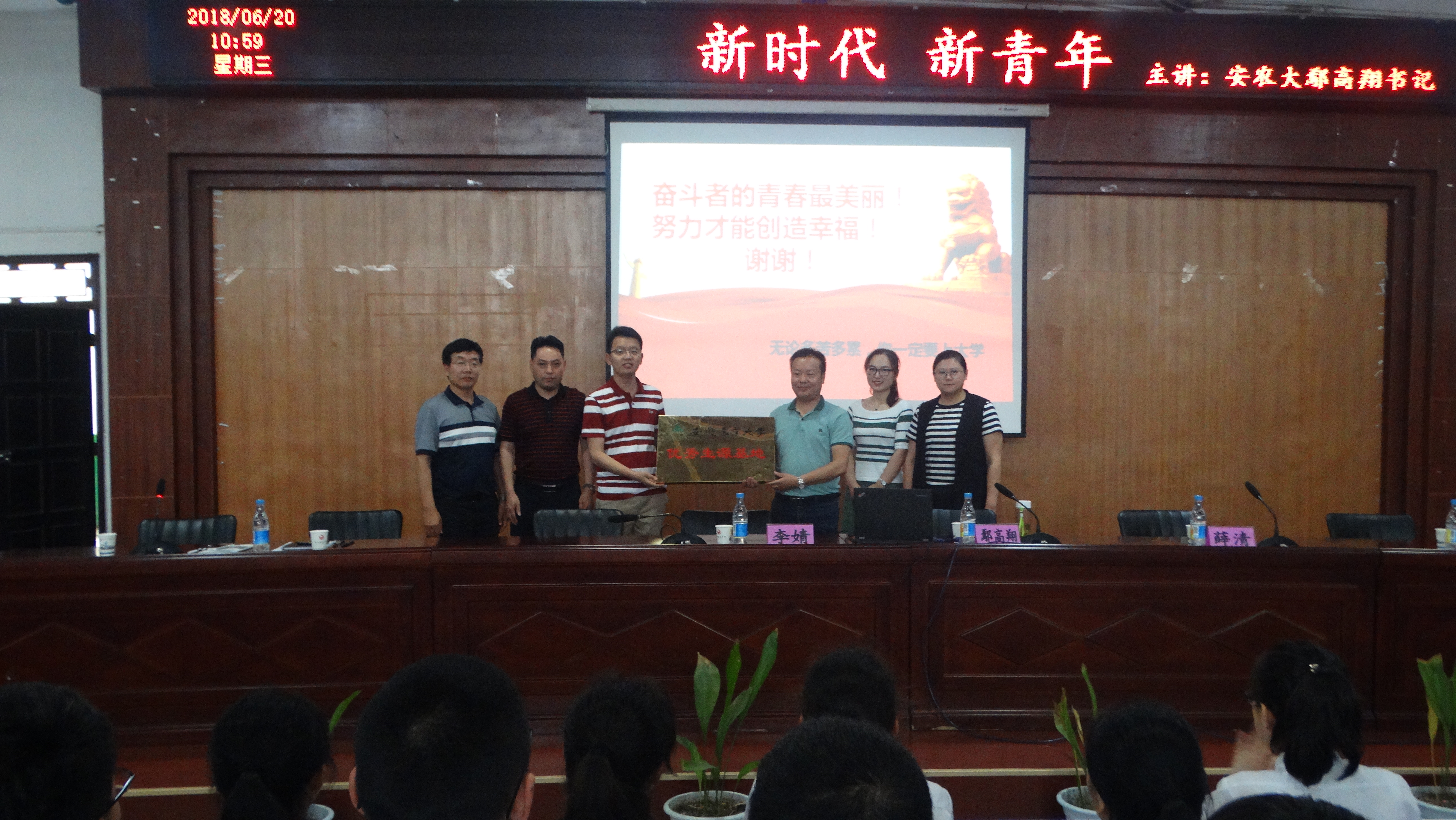 本网讯 6月20日上午,农学院党委副书记鄢高翔一行3人前往萧县鹏程中学举行优质生源基地挂牌仪式暨招生宣传工作,并与中学签署《bet365苹果app优质生源基地协议书》。鹏程中学校长薛清以及分管校领导和毕业班班主任代表、高二学生全体等参加签约授牌仪式。